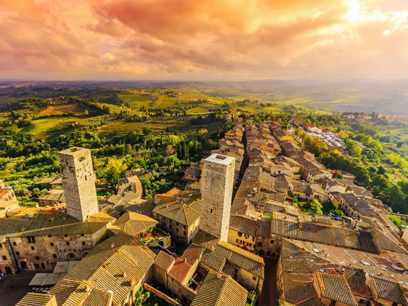 Αφού προγευματίσουμε αναχωρούμε για τη σημερινή μας εκδρομή στα γνωστότερα Τοσκάνικα χωριά. Ξεκινάμε με τη μεσαιωνική Σιένα. Έντεκα δρόμοι οδηγούν στην πανέμορφη πλατεία Πιάτσα ντελ Κάμπο την κεντρική πλατεία που πλαισιώνει αρμονικά το Δημαρχείο και θεωρείται από τις πιο όμορφες πλατείες της Ιταλίας. Θα δούμε ακόμη αγέρωχα αρχοντικά στενά καλντερίμια, πανέμορφες εκκλησίες μαυρισμένες από τον χρόνο. Ακολουθεί το πιο φημισμένο χωριό της Τοσκάνης, το Σαν Τζιμινιάνο, το οποίο αποκαλείται συχνά και «μεσαιωνικό Μανχάταν» επειδή οι δεκάδες πέτρινοι πύργοι του υψώνονται σαν πρωτόγονοι ουρανοξύστες πάνω από τα σπίτια. Επιστροφή στο ξενοδοχείο μας. Διανυκτέρευση.
